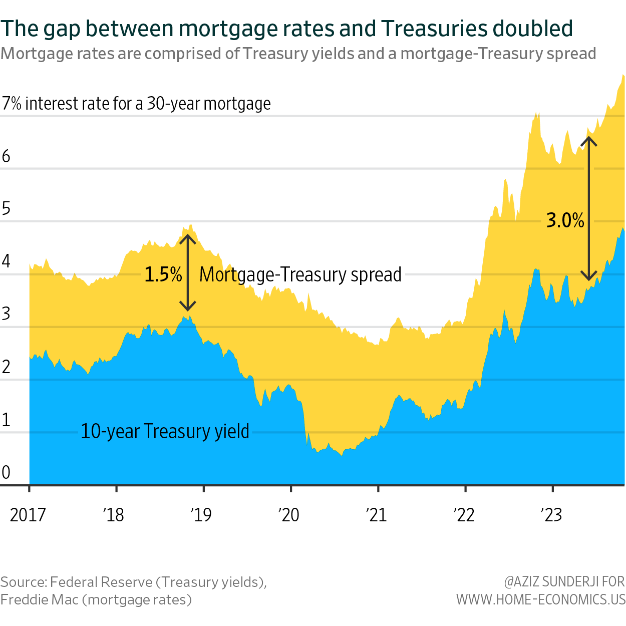 Of course, financial markets are efficient, and the flipside of every risk is a reward. Mortgage investors are rewarded with an interest rate spread over US treasuries for taking on prepayment risk. In fact, rising prepayment risk—and higher mortgage spreads to compensate mortgage bondholders for shouldering it—is one important explanation for how we got to near-8% mortgage rates.